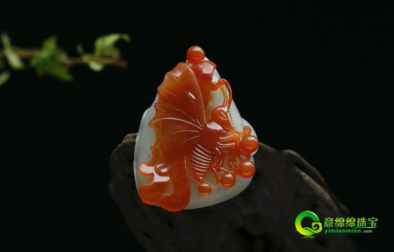 很多人羨慕蝴蝶的美麗,自由飛舞與各色花叢,無憂無慮的感覺甚是歡欣。卻甚少人知道,蝴蝶短暫的生命,它們是在與時間賽跑,在短暫的時間里讓自己的生命綻放到最極致,越是美到極致,也是極致短暫,終究抵不過殘忍的時光。經過數千年沉淀的翡翠,經過雕刻家之手,幾番細雕慢琢之間,就輕易把蝴蝶曼妙的身姿定格在翡翠玉石中。