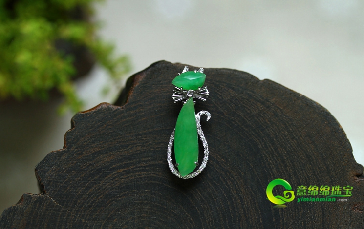 優(yōu)雅時(shí)尚天然緬甸A貨冰種滿綠翡翠玉貓掛件吊墜